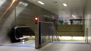 A utilização de cerâmica e cores vivas diferenciam profundamente esta ampliação da estação existente.