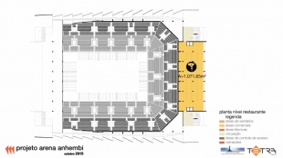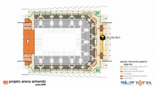 O seu programa contempla um estacionamento de mais de 1.500 vagas que garantirá autonomia para receber eventos independentemente de atividades simultâneas sendo realizadas dentro do Complexo do Anhembi. A arquibancada está disposta em 2 anéis, separados por um nível intermediário com 43 camarotes. Sua capacidade máxima é de até 21.150 pessoas. No lado oeste haverá uma área técnica para apoio às atividades. Foram previstos cerca de 7.800m² de áreas comerciais locáveis tais como bares, restaurantes, lojas e uma academia, o que garantirá circulação de público durante o ano todo.