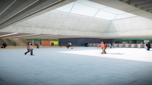 O projeto paisagístico prevê várias atividades de lazer, sendo elas: pista de skate (no nível inferior da praça), playground e área para ginástica. Do lado sul, e no mesmo nível, em edifício contíguo às salas técnicas, está previsto um bicicletário para 290 unidades, posto de segurança, e sala técnica de painéis fotovoltaicos implantados na cobertura. Também foram localizados pequenos boxes comerciais.