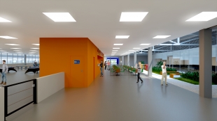 Os interiores estão dimensionados adequadamente e de forma eficiente, porém amplos o suficiente para que todos os funcionários e parceiros estejam devidamente acomodado se trabalhem confortavelmente. Para a escolha dos materiais internos será aplicada a linguagem corporativa da FIBRIA.
